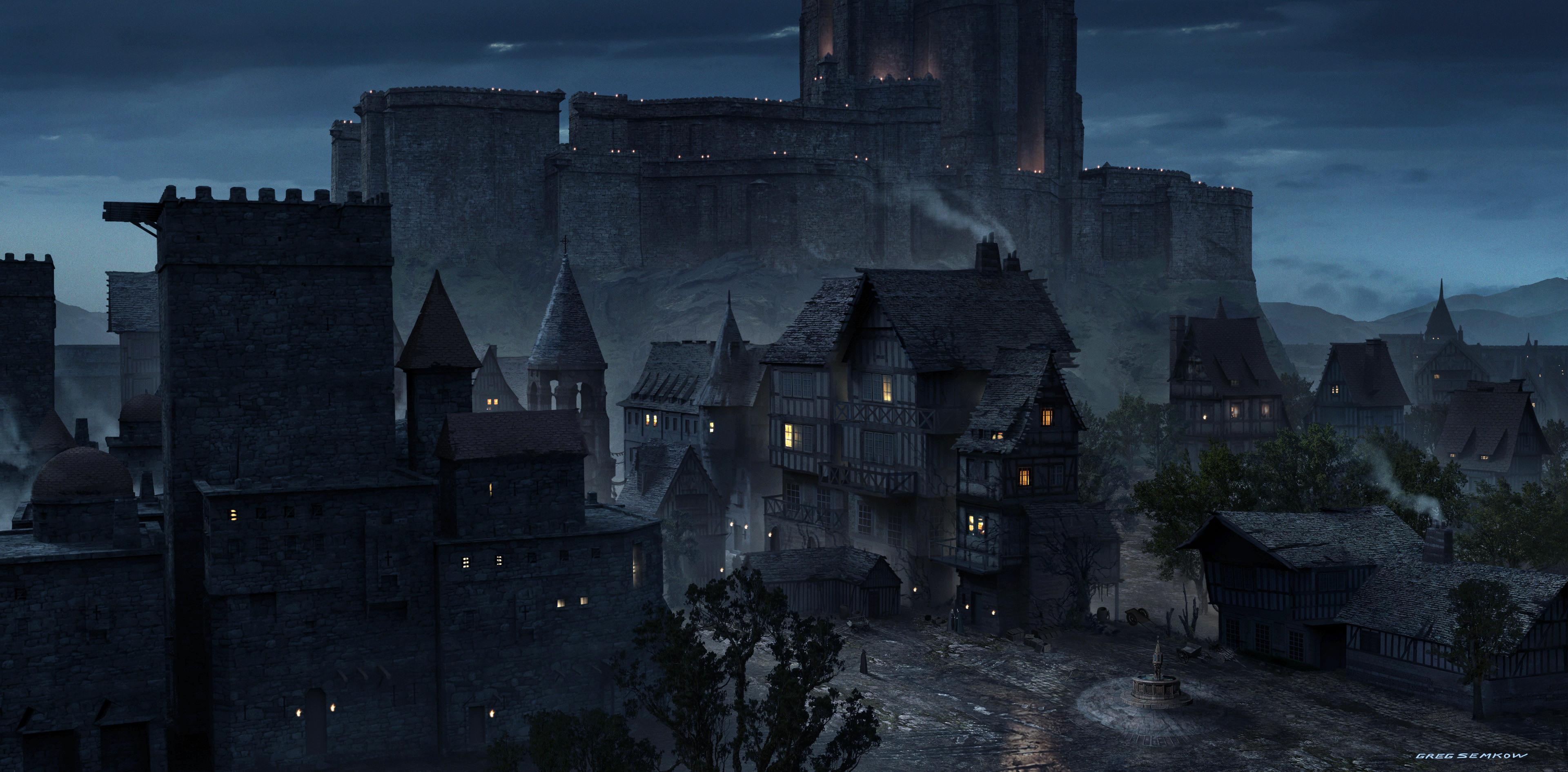 Work from a historical project, the idea was to design a city based on 12th century Old Sarum, an early settlement in Salisbury England - but to increase the scale, and give it slightly more of a fantasy feel.